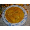 تقلى البصلة في الزيت ثم تضاف قطع الدجاج ويحرك قليلاً مدة 3 / دقائق  تخلط مقادير الخلطة في الخلاط وتسكب فوق الدجاج وتقلب ويترك الخليط على نار متوسطة مدة 20 / دقيقة