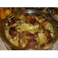 Mix mincemeat with rice, spices, onions, garlic, parsley and coriander, then add the pine and stir.